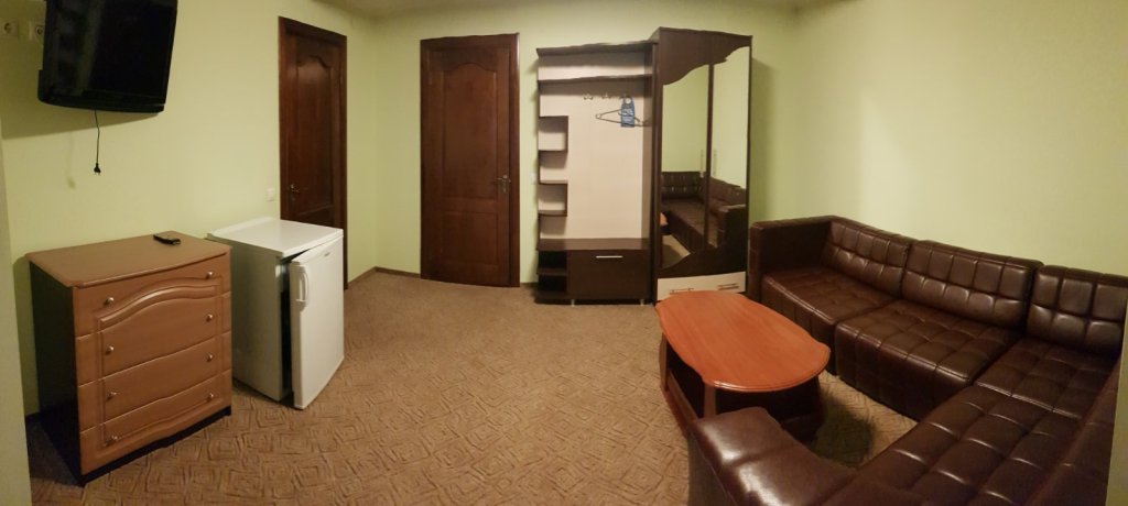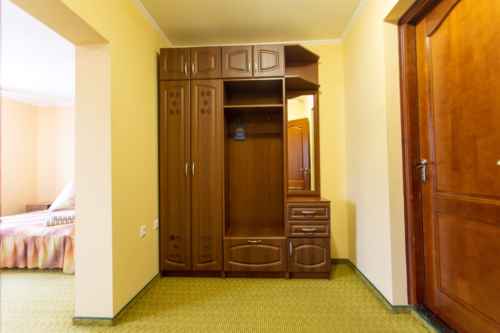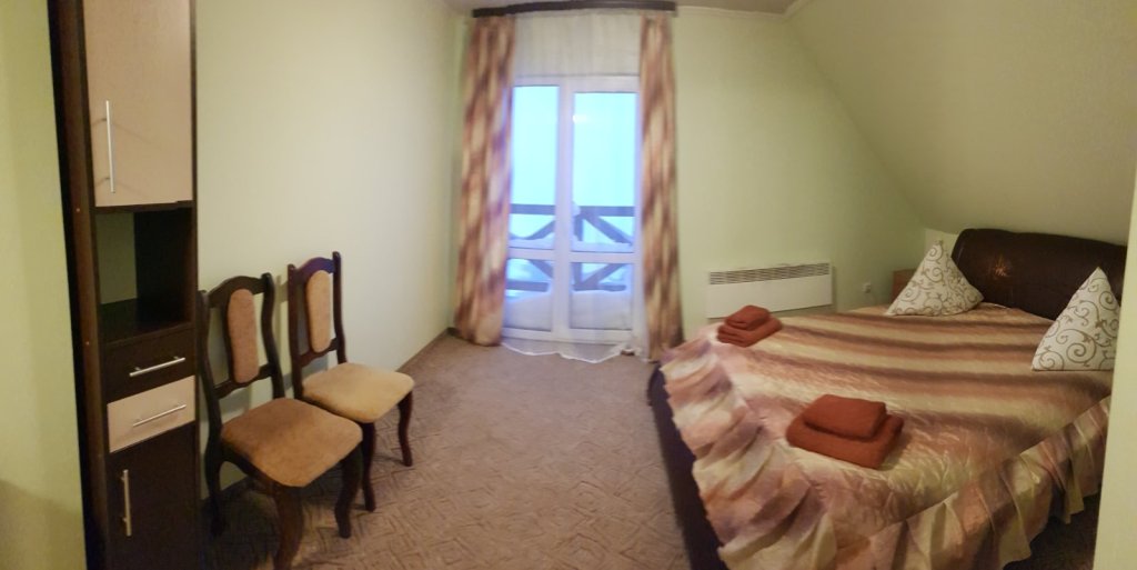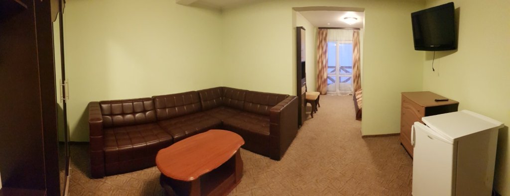 В двокімнатному номері Люкс гостям надається двоспальне ліжко з ортопедичним матрацом, супутникове ТБ, холодильник, телефон, Wi-Fi, набір меблів, ванну кімнату (душова кабінка, умивальник, туалет). Номер розрахований на 2 основних місця.